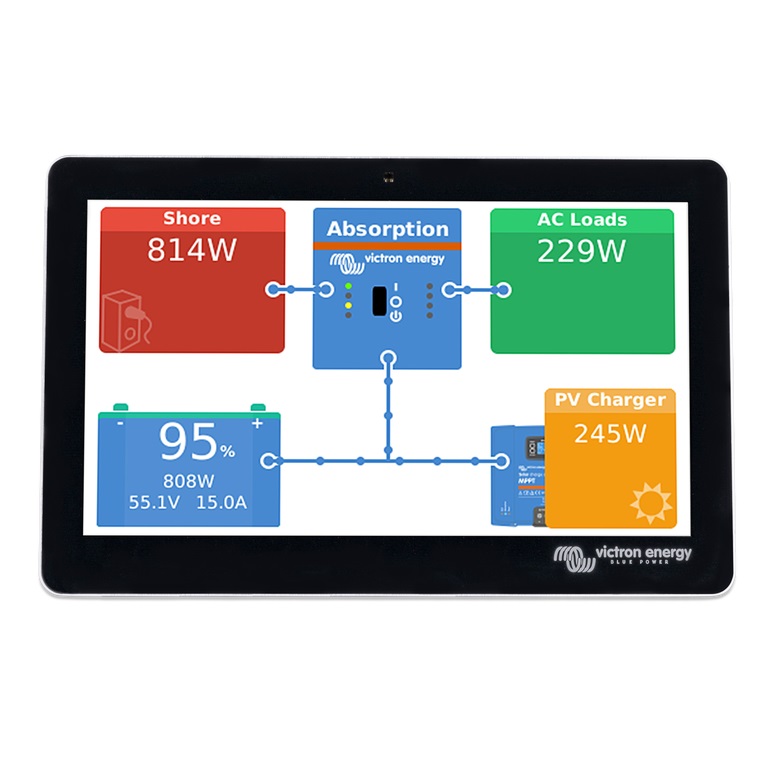 GX Touch este ideal pentru utilizatorii de sisteme Cerbo GX care doresc o interfata de control accesibila si usor de utilizat. Este recomandat pentru instalatii marine, vehicule recreative, sisteme off-grid si orice alta aplicatie unde este necesara o gestionare centralizata si eficienta a energiei.
