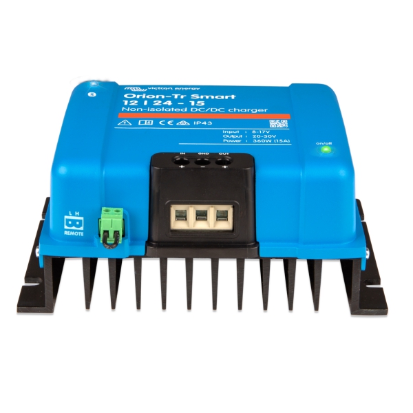Orion-Tr Smart DC-DC charger este un incarcator profesional DC-DC, cu adaptivitate 3 trepte si Bluetooth integrat. Conceput pentru a incarca acumulatorul de serviciu din sistemele de baterii duale din vehicule si ambarcatiuni, folosind alternatorul si bateria de start. Dispozitivul permite monitorizarea si programarea prin Bluetooth si poate fi controlat de la distanta printr-un comutator de activare/dezactivare.