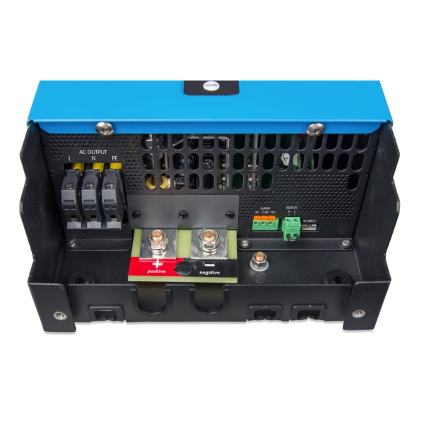 - Interfață de comunicatii – aceste modele de invertoare Phoenix mai mari sunt dotate cu un port VE.Bus. Tot ce trebuie sa faceti este sa conectați PC-ul dvs. in MK3-USB VE.Bus la interfata USB (vedeti categoria accesorii). Impreuna cu software-ul VictronConnect sau VEConfigure, care pot fi descarcate gratuit de pe site-ul nostru web, parametrii invertoarelor pot fi personalizati. Aceasta include tensiunea de iesire si frecventa, setarile supra si subtensiunii si programarea releului. De exemplu, acest releu poate fi utilizat pentru a semnaliza mai multe conditii de alarma sau pentru pornirea unui generator. Invertoarele pot fi, de asemenea, conectate la un dispozitiv GX (de ex., Cerbo GX), pentru monitorizare si control.