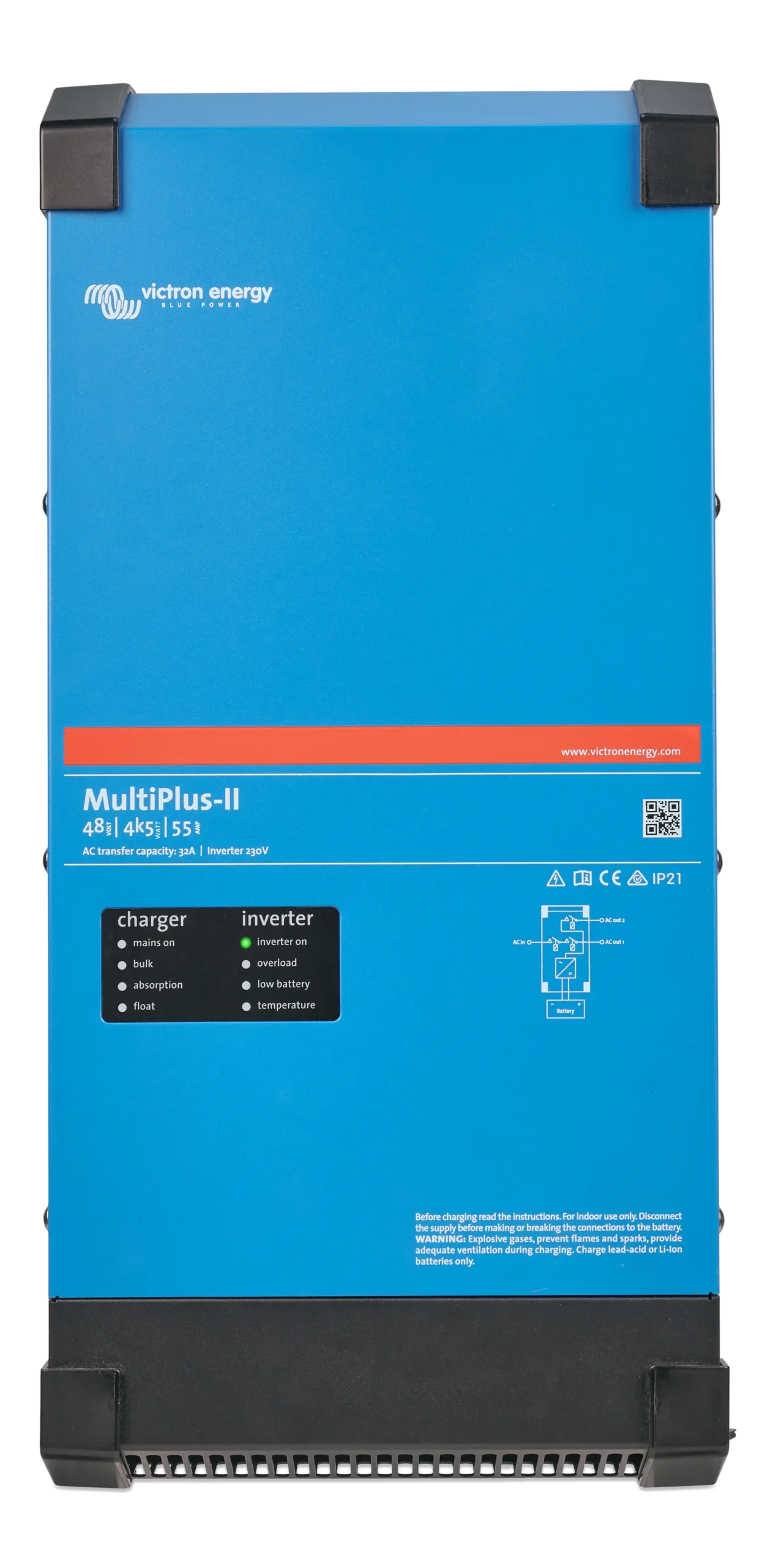 Invertorul si incarcatorul MultiPlus-II de la Victron Energy combina functiile avansate ale MultiPlus si MultiGrid, oferind o solutie completa pentru gestionarea energiei. Acesta include toate caracteristicile MultiPlus, precum optiunea de transformator de curent extern pentru implementarea functiilor PowerControl si PowerAssist, care optimizeaza autoconsumul cu masurare externa a curentului (pana la 32A). In plus, integreaza caracteristicile MultiGrid, incluzand protectia anti-islanding si o lista extinsa de aprobari pentru diferite tari. In trecut, acest produs a fost denumit MultiGrid-II.