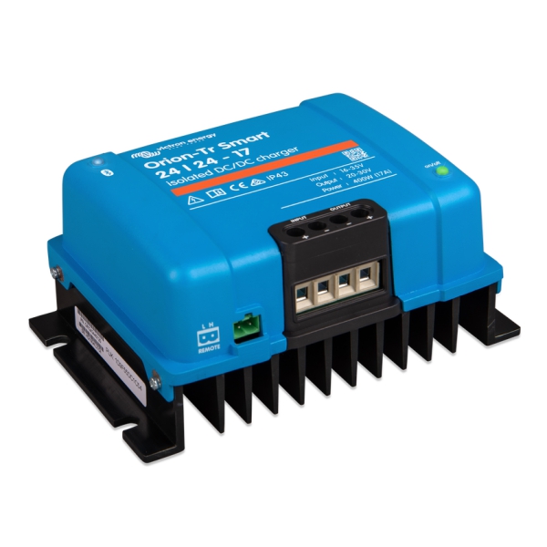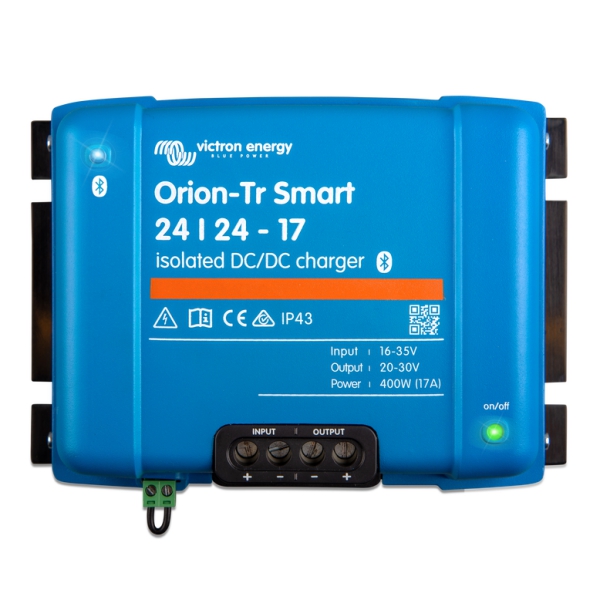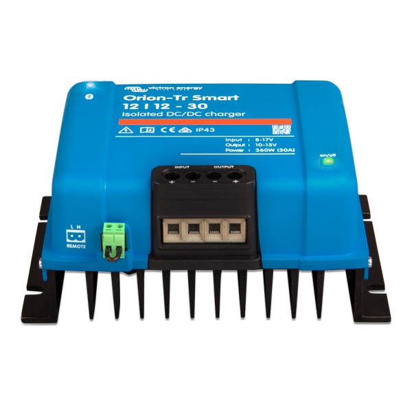 Orion-Tr Smart DC-DC charger este un incarcator profesional DC-DC, cu adaptivitate 3 trepte si Bluetooth integrat. Conceput pentru a incarca acumulatorul de serviciu din sistemele de baterii duale din vehicule si ambarcatiuni, folosind alternatorul si bateria de start. Dispozitivul permite monitorizarea si programarea prin Bluetooth si poate fi controlat de la distanta printr-un comutator de activare/dezactivare.