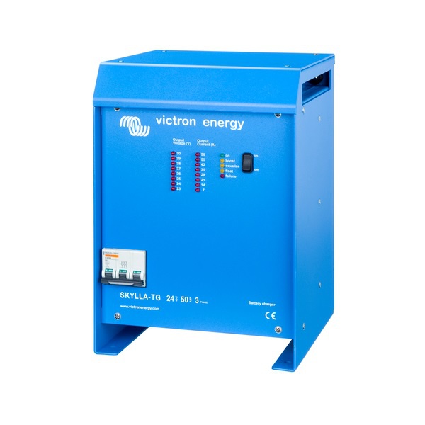 Victron Skylla-TG este un încărcător de baterii industrial de mare putere, recunoscut pentru construcția sa extrem de robustă și fiabilitatea în medii solicitante (maritim sau industrial greu).