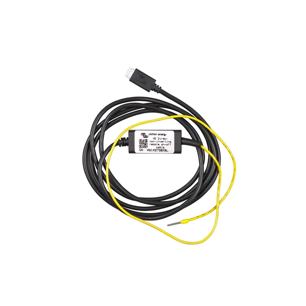 Cablul este echipat la un capăt cu un conector specific VE.Direct (alb, cu 4 pini), care se introduce în regulatorul solar sau în invertor. La celălalt capăt, dispune de fire libere sau conectori pregătiți pentru a fi legați la sursa de control.