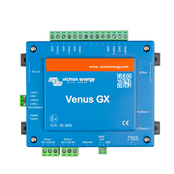• Centralizarea datelor: Acționează ca un „creier” care colectează informații de la toate echipamentele conectate, precum invertoarele MultiPlus, regulatoarele MPPT și monitoarele de baterie BMV.